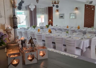 Zadbamy o to, by Państwa uroczystość była wyjątkowa i niezapomniana dzięki odpowiednio dobranemu menu i wystrojowi, dbając o wygodę Gości i niepowtarzalną atmosferę.