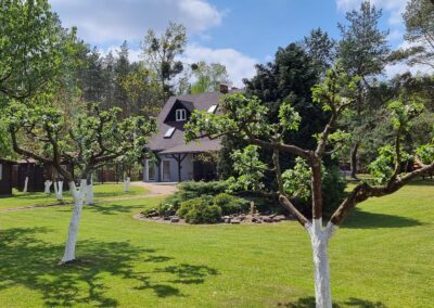 Rozległy, zielony teren, który koi duszę i zaprasza do spacerów boso po trawie.